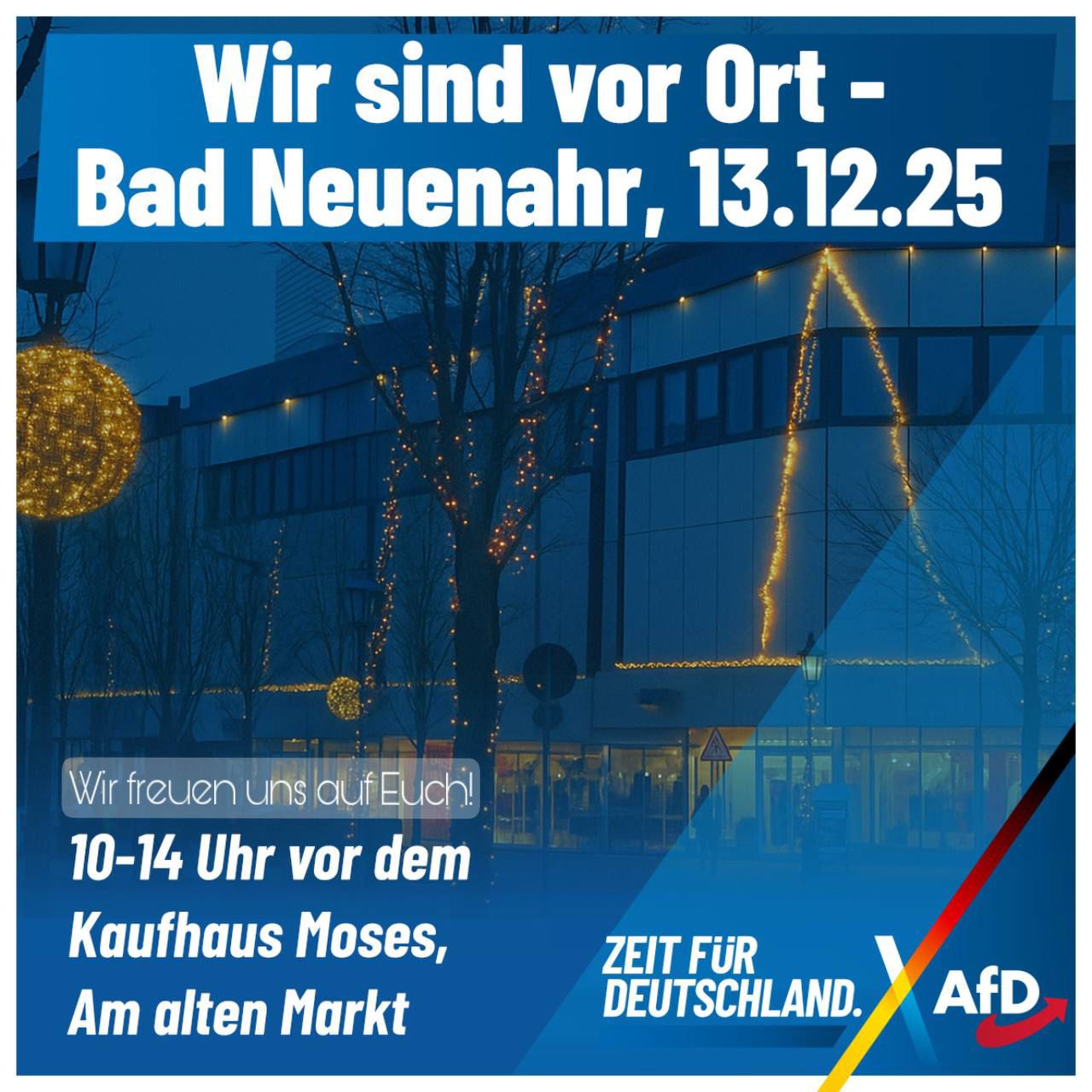 Am Samstag, den 13. Dezember 2025 von 10 bis 14 Uhr stehen wir vor dem Kaufhaus Moses am alten Markt.